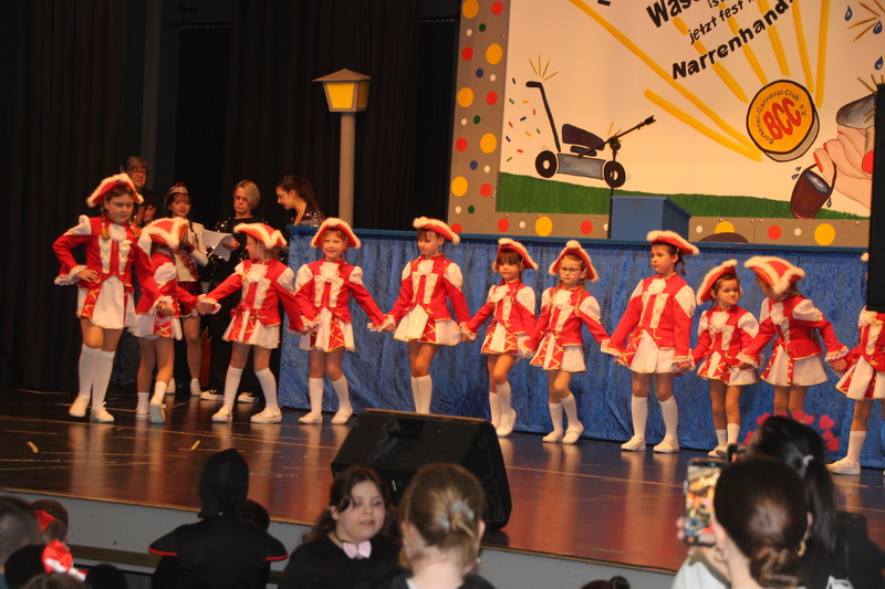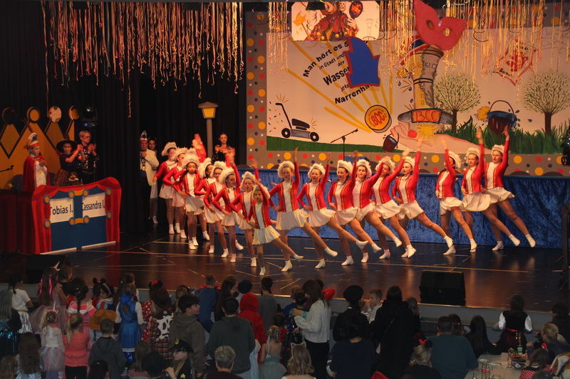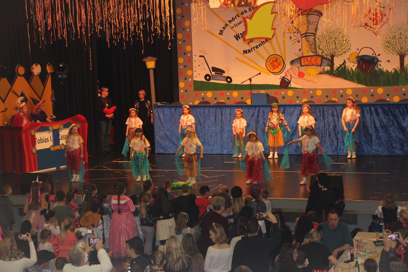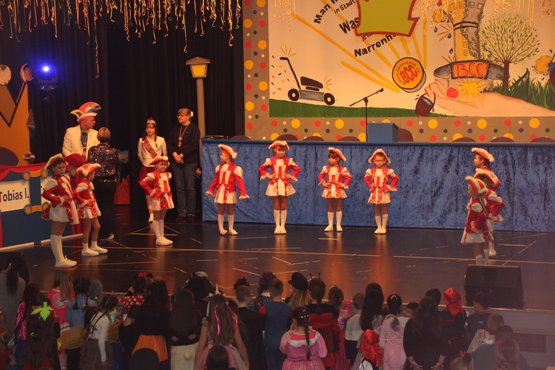 Kinderkarnevalsitzungspräsidentin Alex Betz wurde unterstützt von Leandra Schrumpf. Sie präsentierten alle Garden und Mariechen des BCC. Diesmal waren auch die Littles, die Jüngsten des Clubs, dabei. Sie glänzten mit Marschtanz und einem Schautanz zum Film „Vaiana“, dem hawaiianischen Mädchen, das auszog, sein Volk zu retten. Um die großen und kleinen Gäste zum Mittanzen zu animierten, waren einige Aktive in Figuren der Serie „PAW Patrol“ geschlüpft. Einen Gastauftritt hatte die “Glitzergarde” von Konfetti 2000. Auch die große Polonaise durch die Säle des Bürgerhauses durfte nicht fehlen.