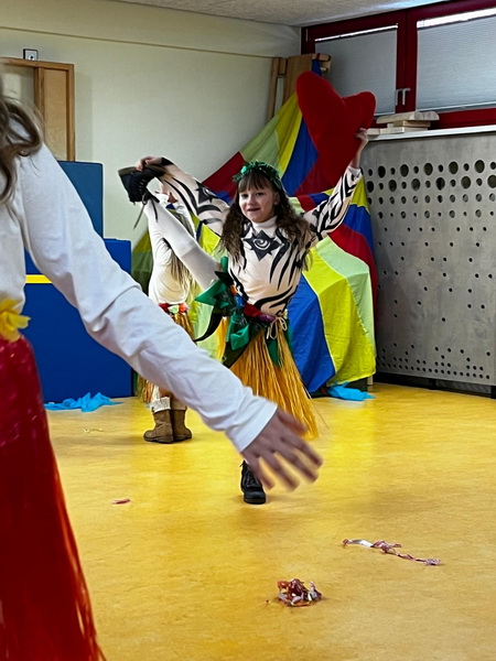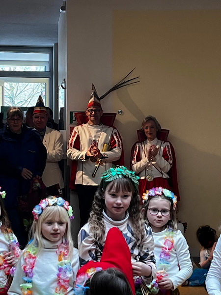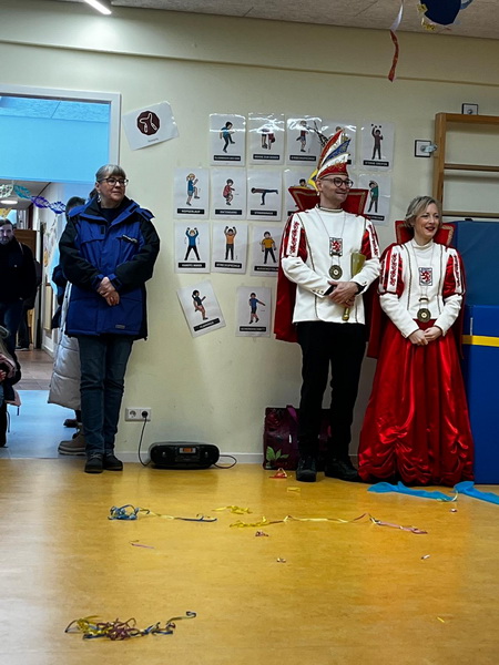 Zum Abschluss hielt Frau Müller, die stellvertretende Kita-Leitung, eine liebevoll vorgetragene Rede in Reimform, die bei allen ein Lächeln ins Gesicht zauberte. Das Prinzenpaar hatte außerdem einen fröhlichen Mitmachtanz im Gepäck. „Gute Laune“ Gemeinsam wurde getanzt, natürlich bei bester Laune. S.B.