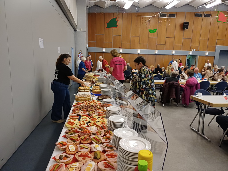 Marschtänze von Garden und Mariechen, Schautänze der Garden, der Ladykracher und des Männerballetts, Büttenrede und Gesang erwarteten die Gäste! Das große Kuchenbuffett der BCC-Aktiven machte den Nachmittag noch einmal schmackhafter!