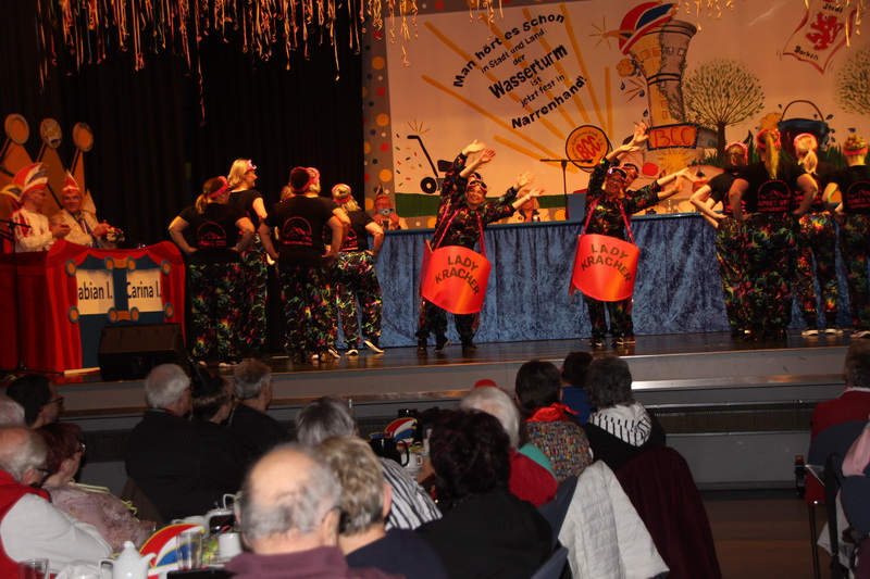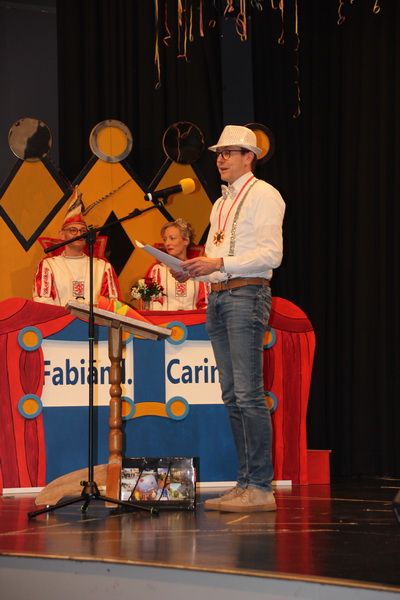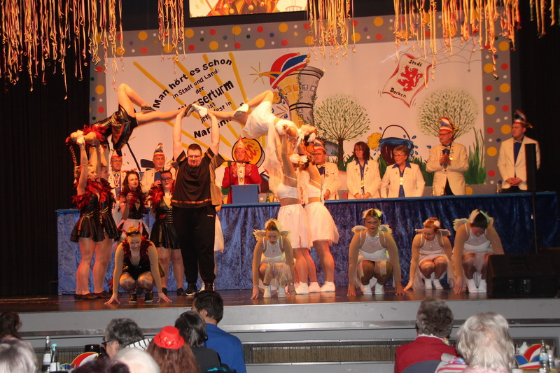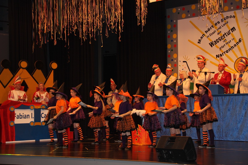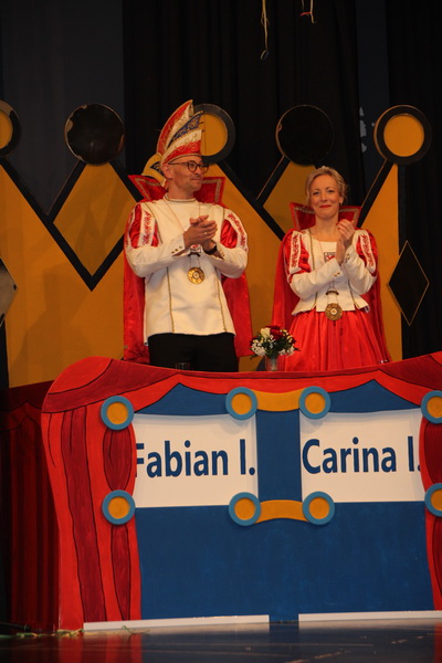 Pünktlich um 14 Uhr begann die Veranstaltung mit dem Einzug der Prinzenpaare, Garden, Mariechen und Elferräte. Sitzungspräsident Marco Körner führte durch das abwechslungsreiche, bunte Programm. Das Stadtprinzenpaar, Prinz Fabian I. und Prinzessin Carina I., beide aus dem Hause Göhrlich, in Begleitung des Kinderprinzenpaares, Prinz Tobias I. aus dem Hause Friedel und Prinzessin Cassandra I. aus dem Hause Ciba, stimmte die Zuschauer mit einer Ansprache auf den Karneval ein.
